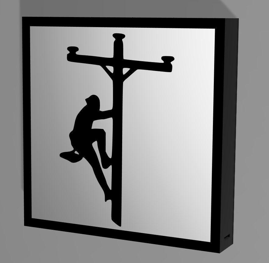 Lineman Climbing Power Pole LED LightBox
