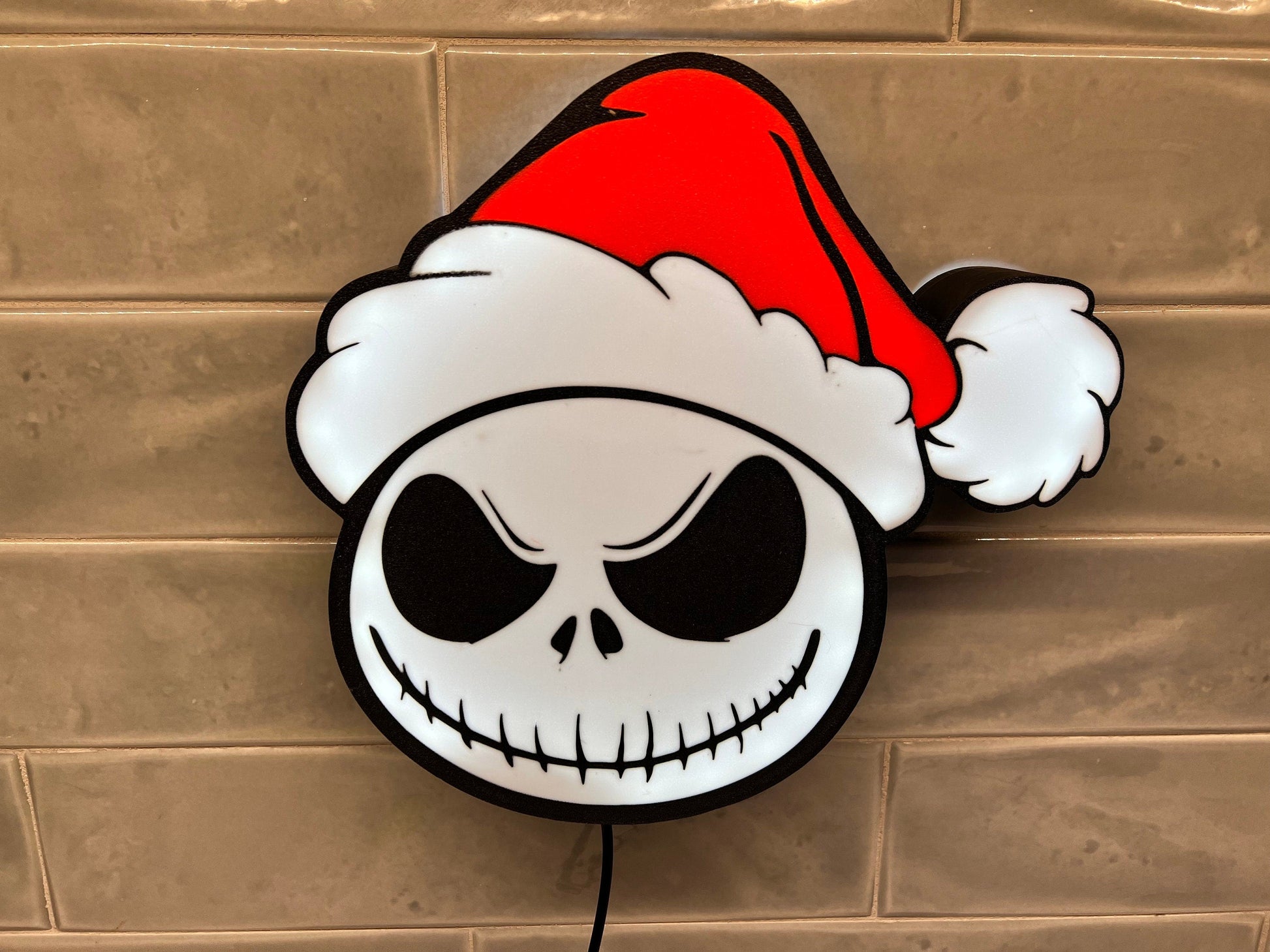 The Nightmare Before Christmas Jack Skellington LED Light Box - custom designed and ready to proudly display your Christmas delight. The lightbox is 3D printed with LED's inside. Remote or switch available. - Made to Order and great for a dorm room, kids wall, man cave, or office…Comes with LEDs lights.